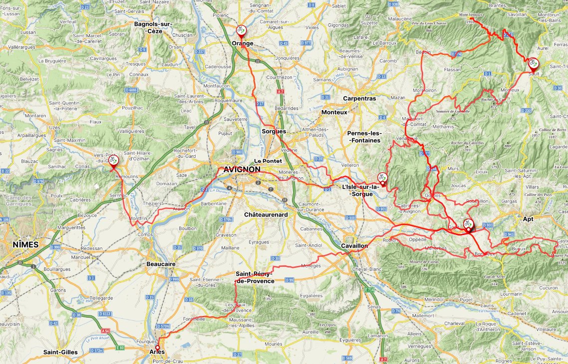 Vybrali jsme pro vás to nejlepší z jižní Francie! Parádní příroda, koupání, vinice, zapomenuté kamenné vesničky, antické památky... Ubytujeme se na dosah těch nejkouzelnějších míst Provence na východ od Avignonu, odkud máme na dosah malebné vesničky Gordes, Rousillon, Fontaine de Vaucluse, Venasque, Oppéde, Menérbes i opatsví Senanque. Při několika etapách si vypomůžeme busem a navštívíme tak i vzdálenější místa. Prohlédneme si město Arles se vzpomínkou na Římany a Van Gogha, skalní město Les Baux, antické památky a sanatorium Van Gogha u St. Remy a také úžasný Pont du Gard. Určitě vás zaujme i návštěva Avignonu, kde stojí za prohlídku nejen papežský palác. Jako bonbónek si necháme královskou etapu na nejvyšší vrchol Provence – Mt. Ventoux 1909m/m (nepovinně ;-)).